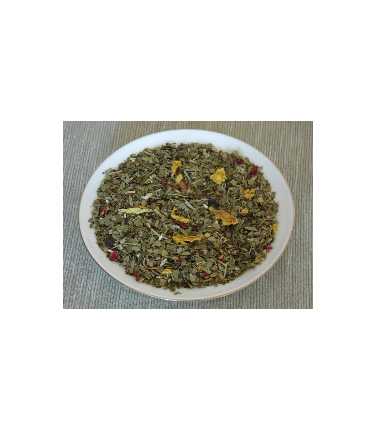 Skład: Liście Mate z dodatkiem pomarańczy, kwiatu słonecznika i guarany.
